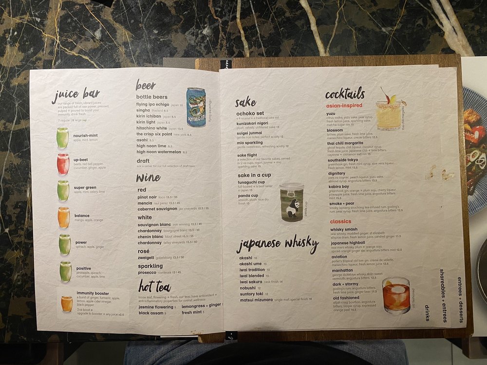 Introducing the menu at wagamama - midtown, located in New York City, this trendy and intimate restaurant offers a variety of vegan and vegetarian options alongside its diverse Asian fusion cuisine. The dishes, such as the Mushroom Bao and spicy salmon teriyaki soba, are flavorful and delicious. The attentive wait staff and modern interior create a pleasant dining experience. Must-try items include the Asian fusion fries, perfect for dipping in the ramen broth, and the firecracker rice, a crowd-pleaser. Customers praise the generous portion sizes, friendly atmosphere, and unique cocktail selection. For a satisfying lunch or dinner, wagamama - midtown is a standout choice with a menu that caters to all tastes in a stylish setting.